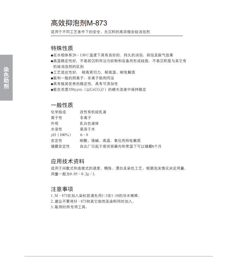 具有良好的、持久的消泡、 抑泡及除气效果;高温稳定性好,工艺适应性好。