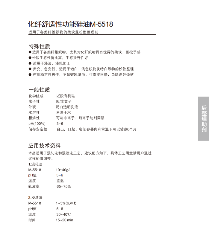 适用于各类纤维织物的柔软蓬松型整理剂。