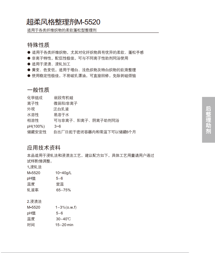 适用于各类纤维织物的柔软蓬松型整理剂。