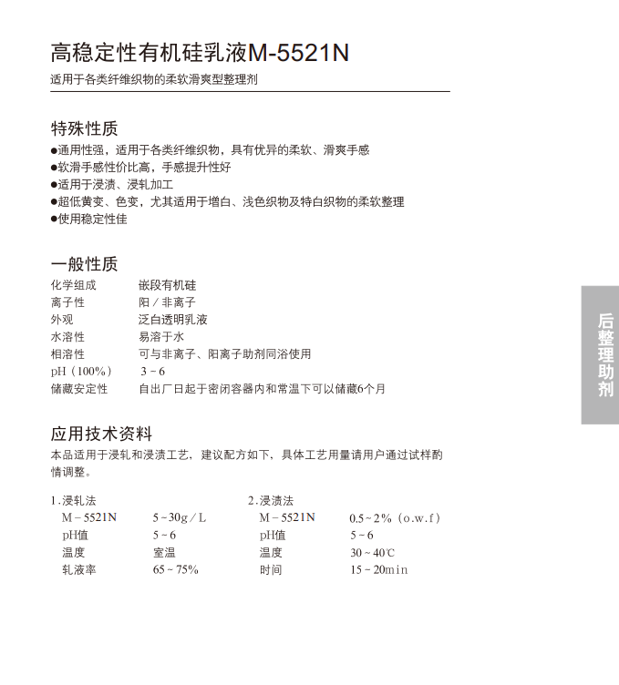 适用于各类纤维织物的柔软滑爽型整理剂。