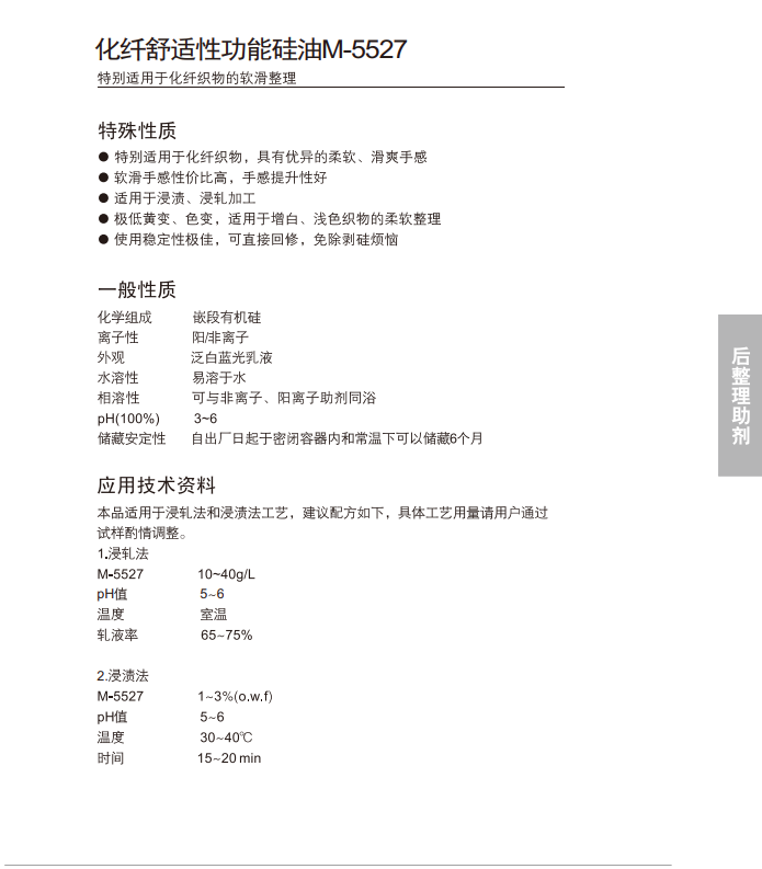 软滑手感性价比高,手感提升好。黄变、色变低,适用于增白、浅色织物。使用稳定性极佳,可直接回修,免除剥硅烦恼。