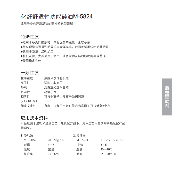 适用于各类型纤维织物的通用型嵌段硅油。
