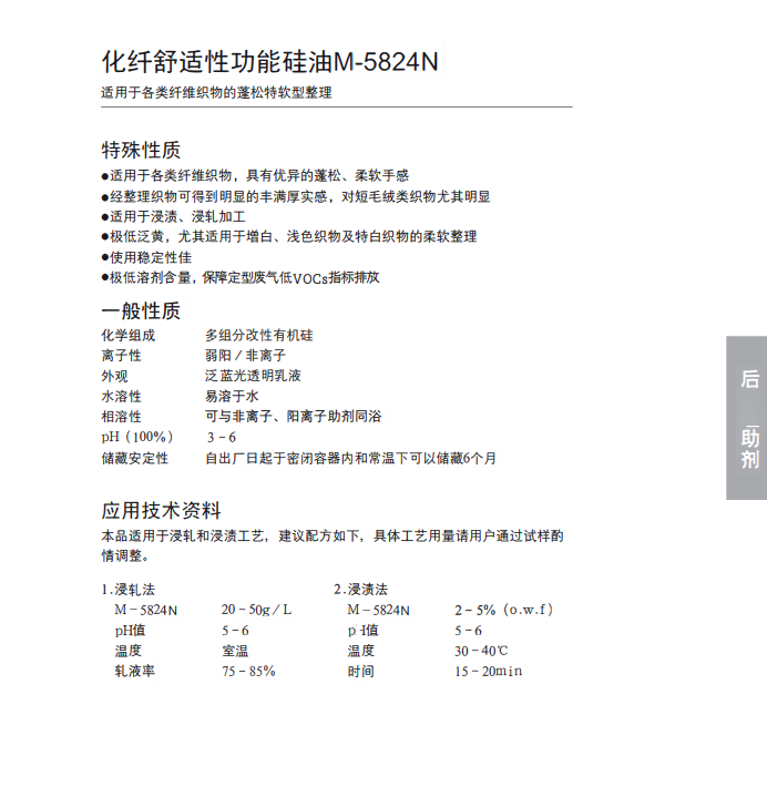 工艺用量:浸渍2-5% (o.w.f),浸轧:20-50g/L