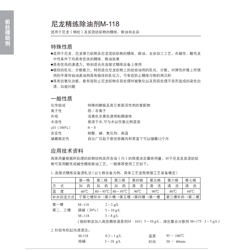 适用于尼龙织物、氨纶织物及其混纺织物的前处理精练除油加工。