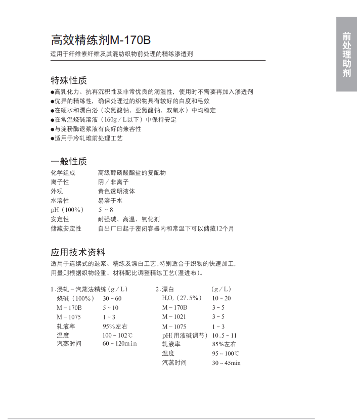 工艺用量:煮练5-10g/L,漂白2-5g/L