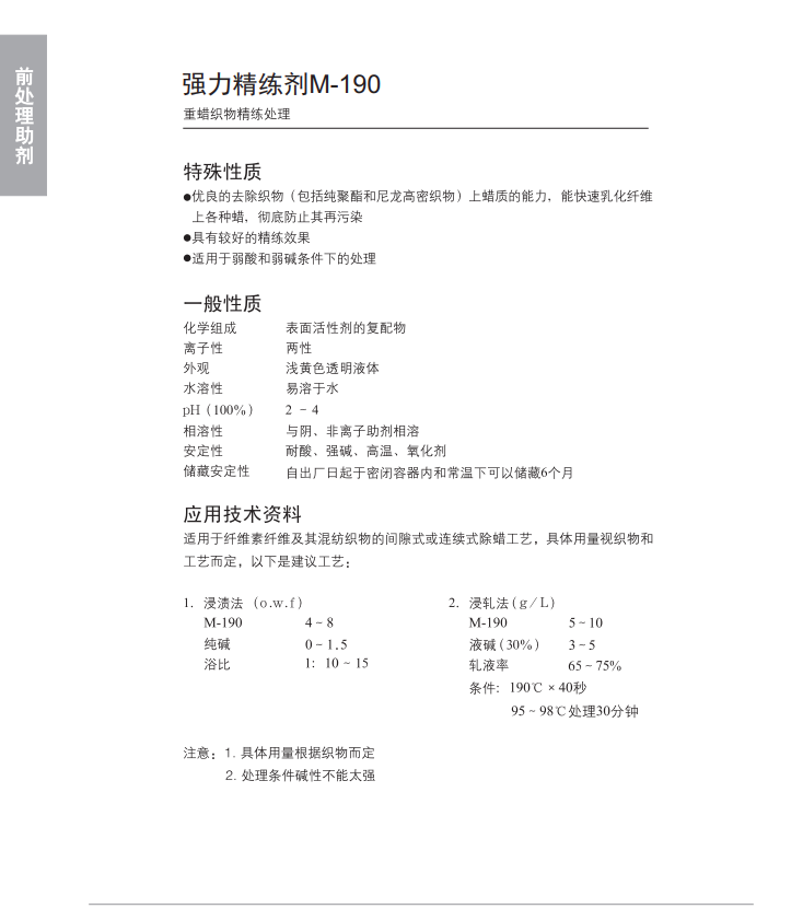 适用于重蜡织物精练处理。