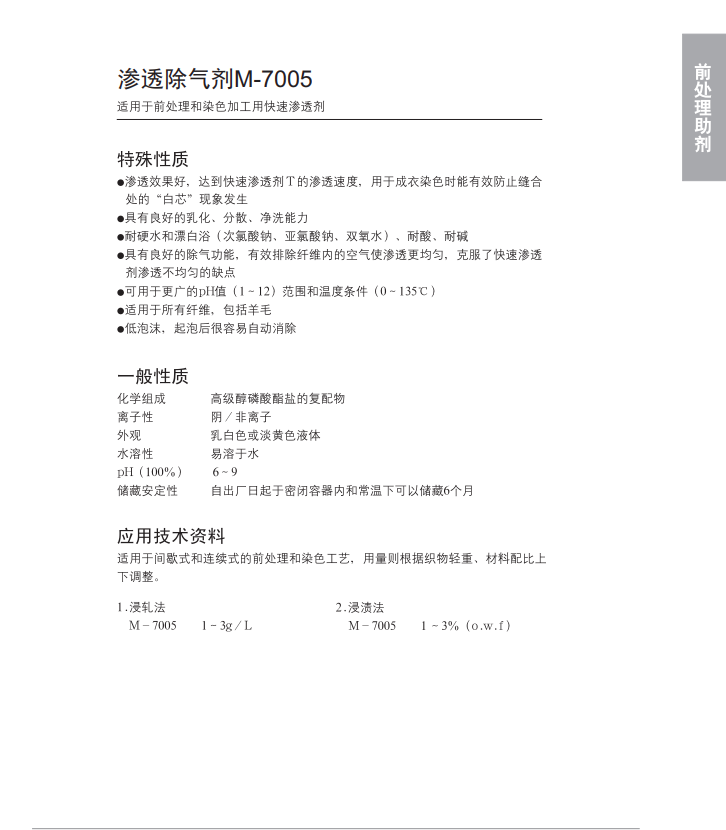 前处理和染色加工用快速渗透除气剂。