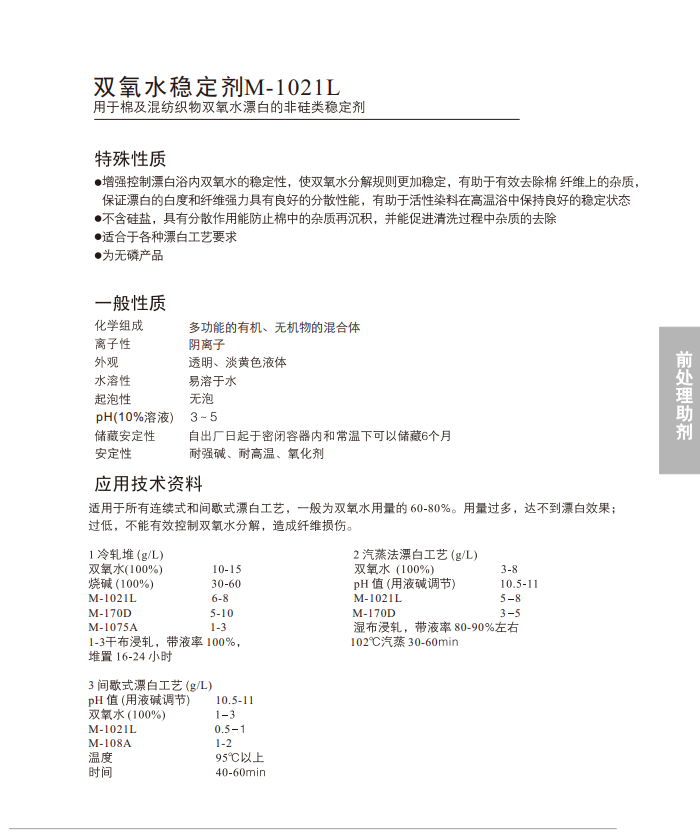 工艺用量:冷轧堆6-8g/L,汽蒸法5-8g/L,间歇式0.5-1 g/L